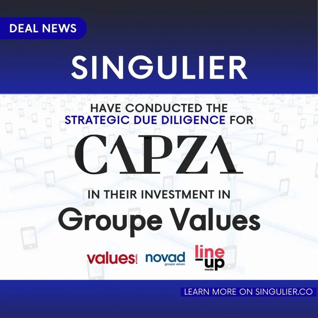 Singulier congratulates CAPZA and Groupe Values on this transaction and continues to support investors on strategy, technology and value creation topics for fast-moving markets like the French media and marketing services sector where innovation, data and consolidation are reshaping the competitive landscape.